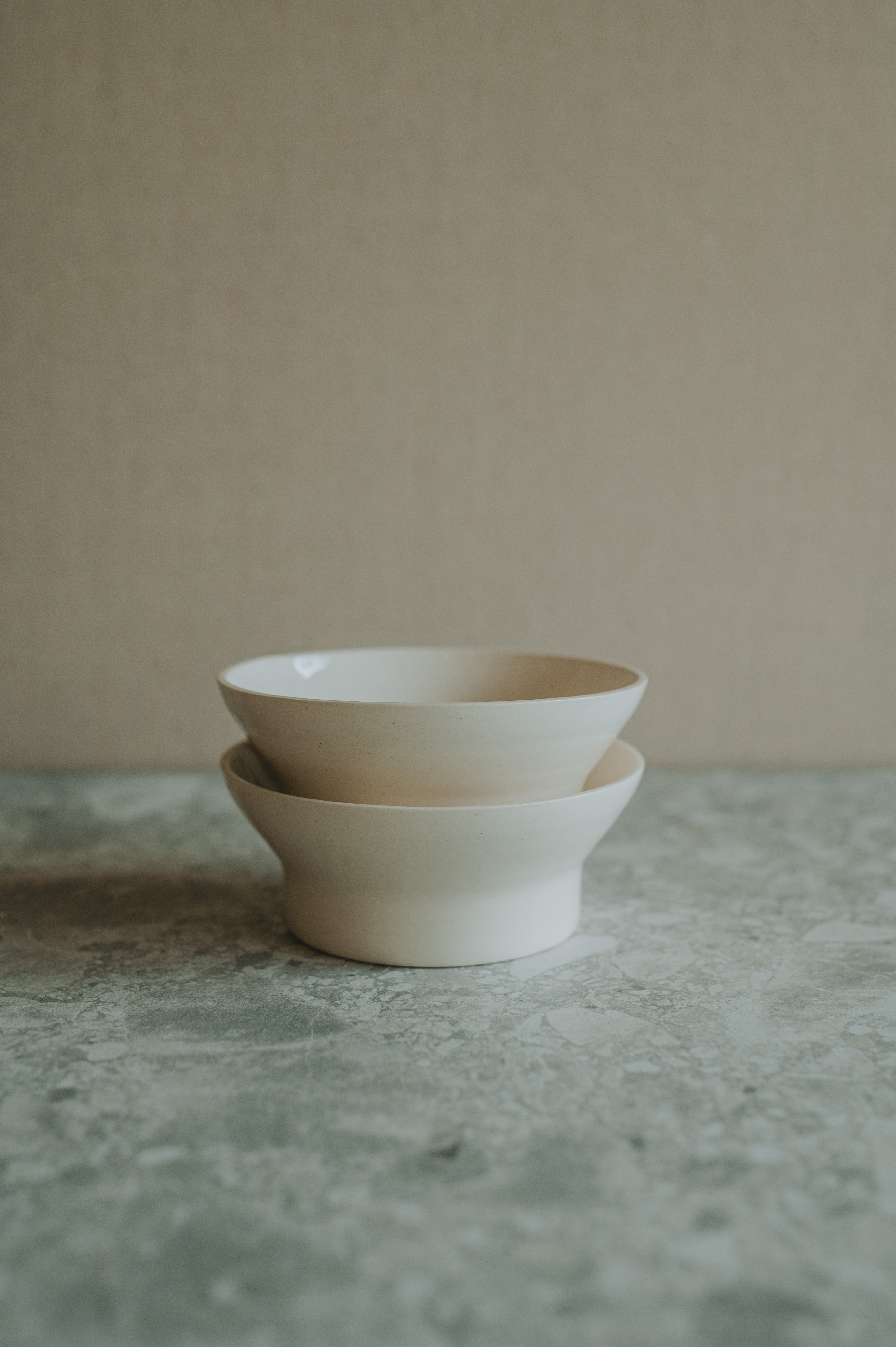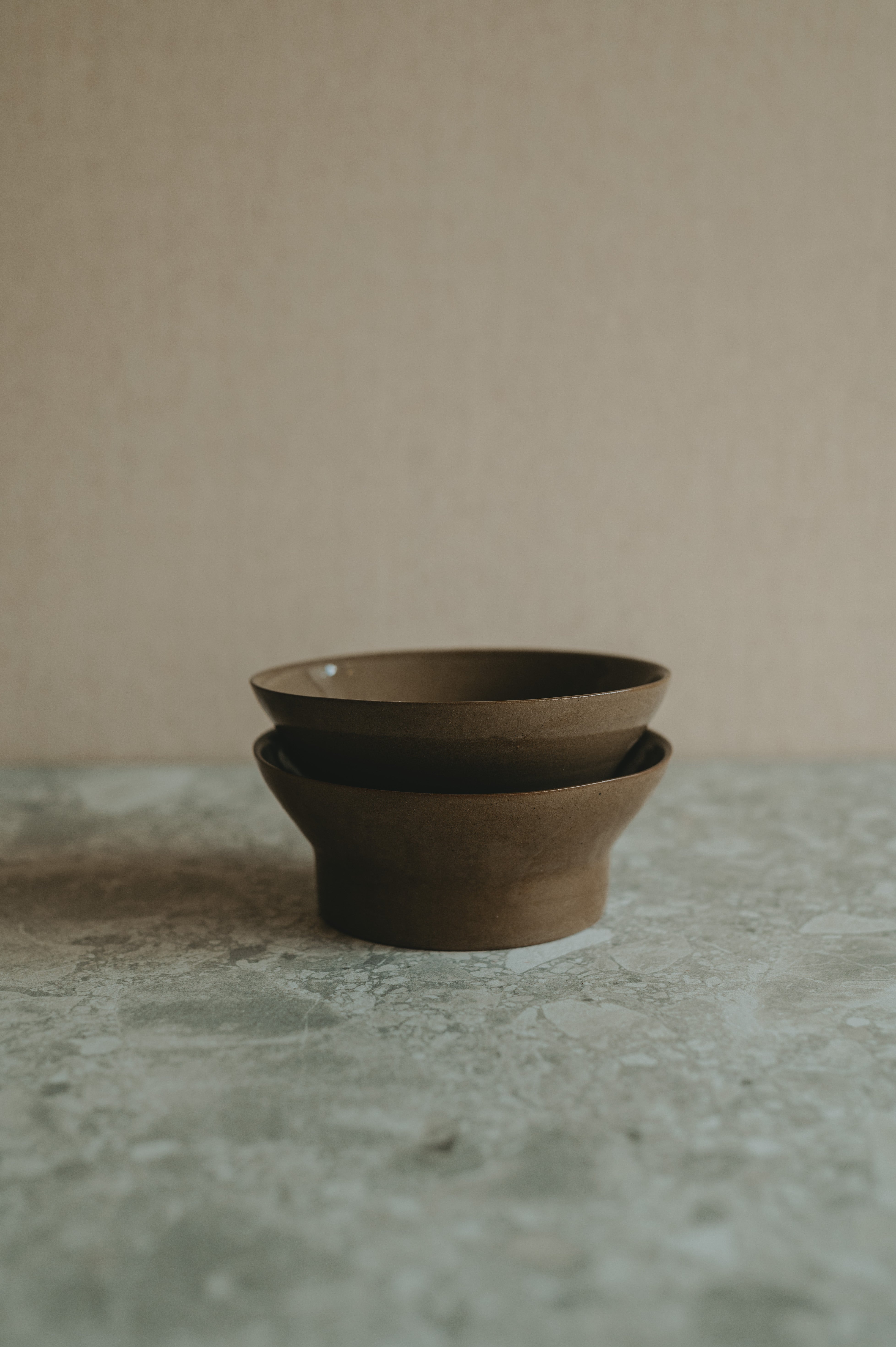 Skålarna är skapade av formgivaren Alexandra Johansson och gjutna i genomfärgad lera med tidlösa, välbalanserade former. Varje skål är resultatet av ett noggrant hantverk där proportioner, yta och uttryck samspelar på ett harmoniskt sätt.
