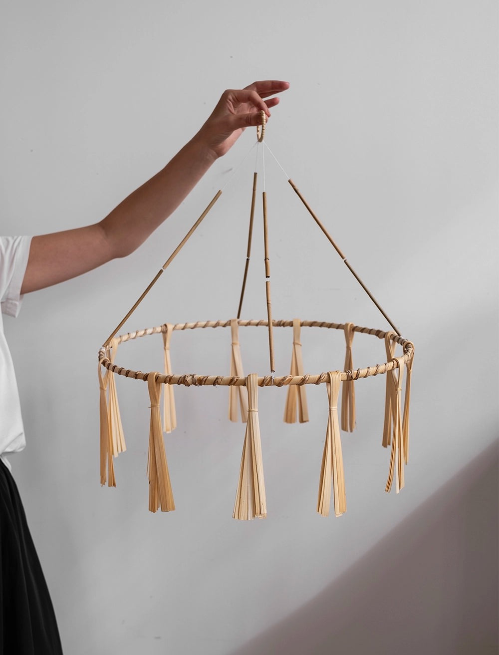 Denna Fairtrade-tillverkade krans i bambu kommer genast att tillföra en festlig stämning till rummet. Gör den personlig med hängen i olika former och material samt naturens egna smycken, eller använd den som den är – enkel och vacker.