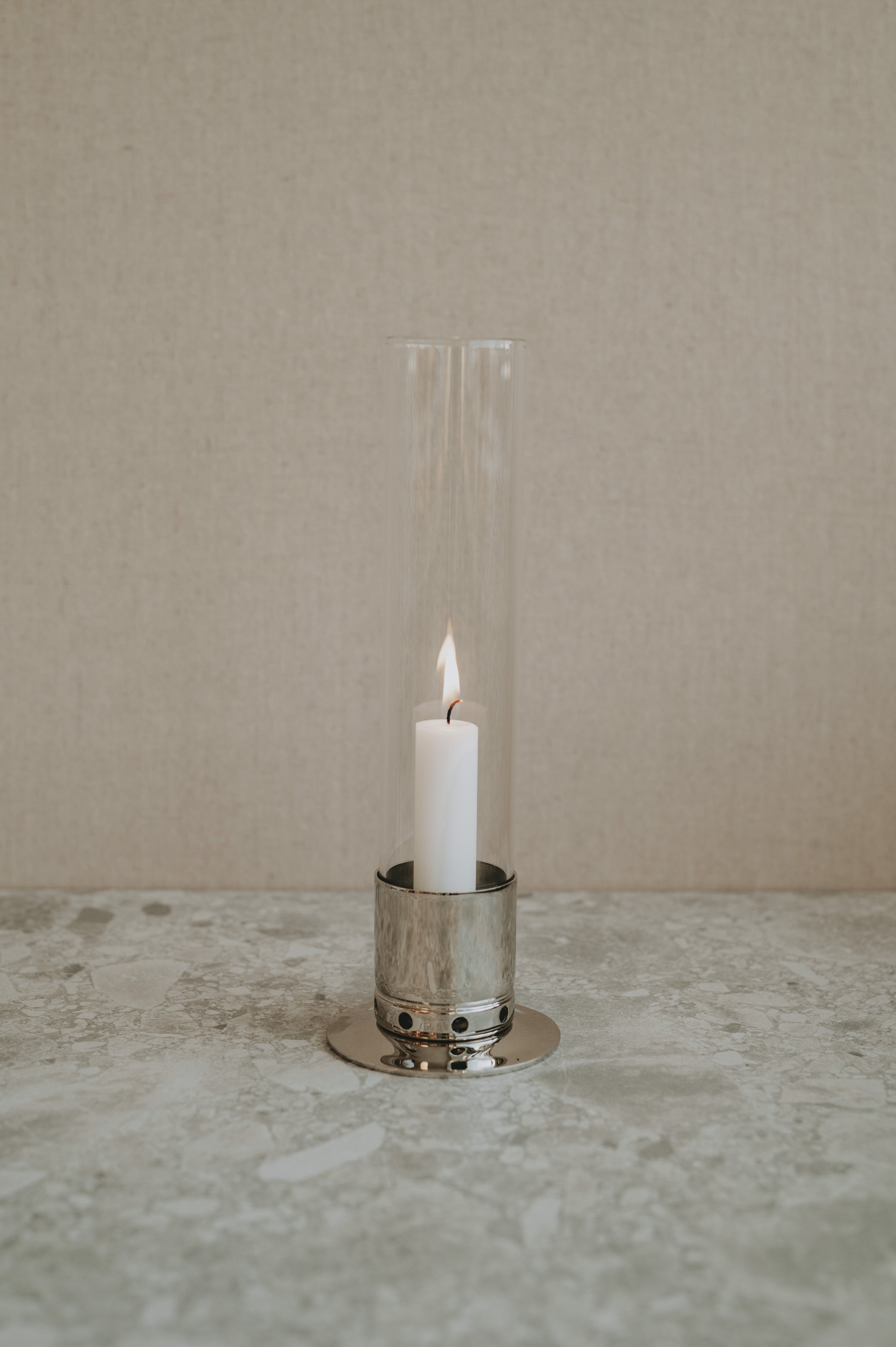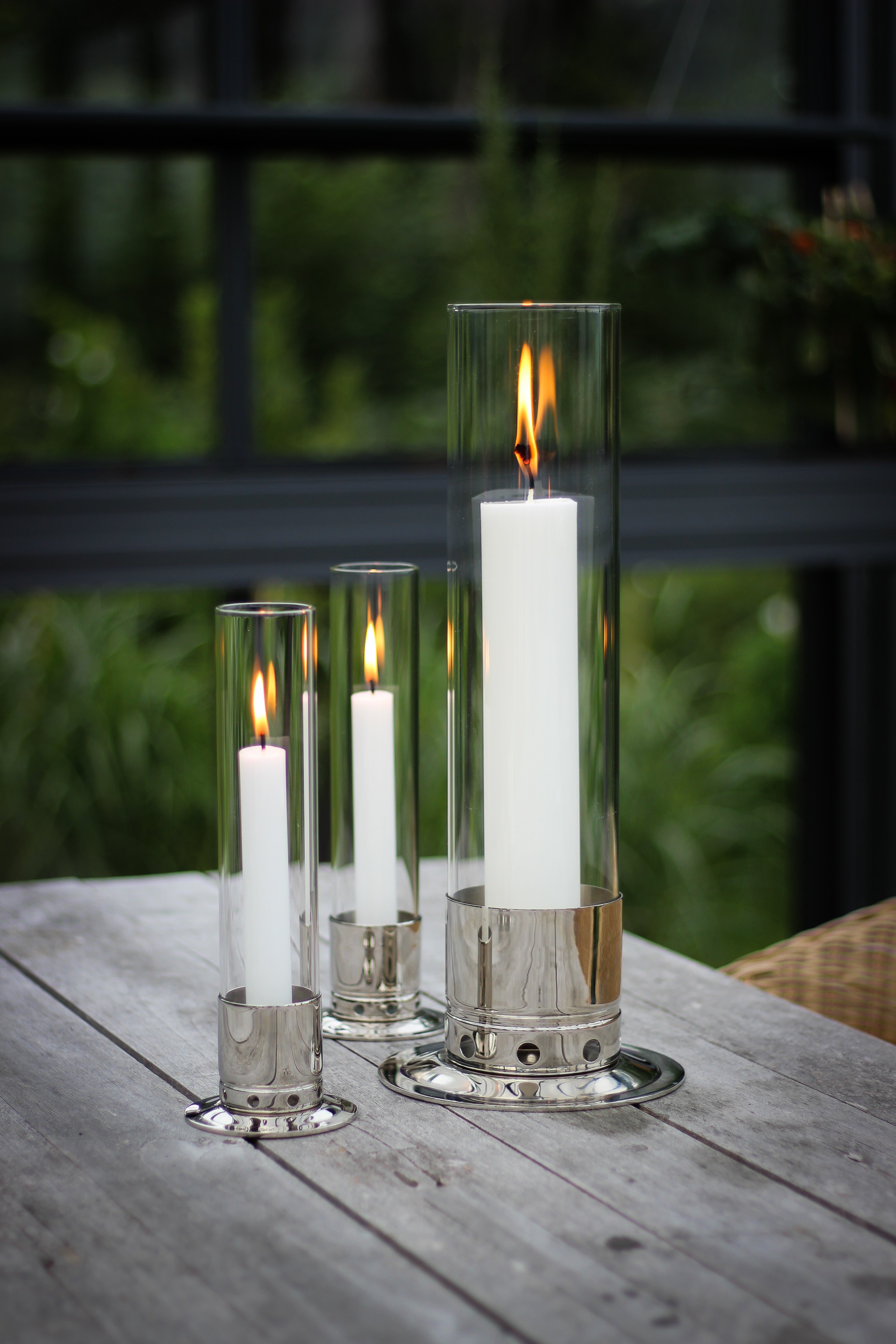 Med vackert stormglas som hindrar ljusen från att blåsa ut och minimerar risken för eld. Stabil och smidig fot håller ljusstaken stående även i hård vind och tar liten plats på bordet.