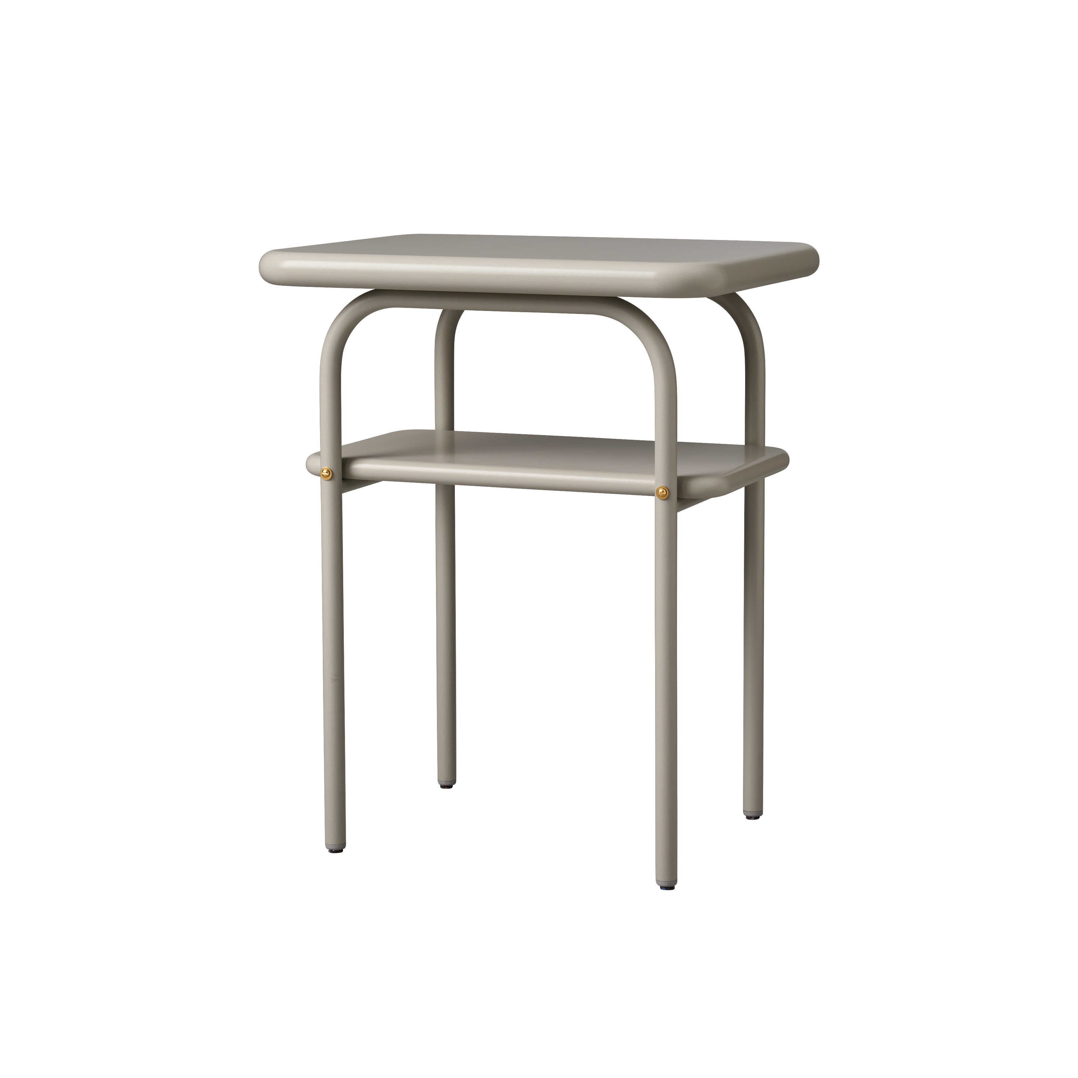 Ett skulpturalt sidobord med mjuka, rundade former och ett elegant uttryck. Diskreta detaljer i mässing skapar en fin kontrast och ger bordet karaktär. Passar lika bra som sängbord som sidobord i hall eller vardagsrum.