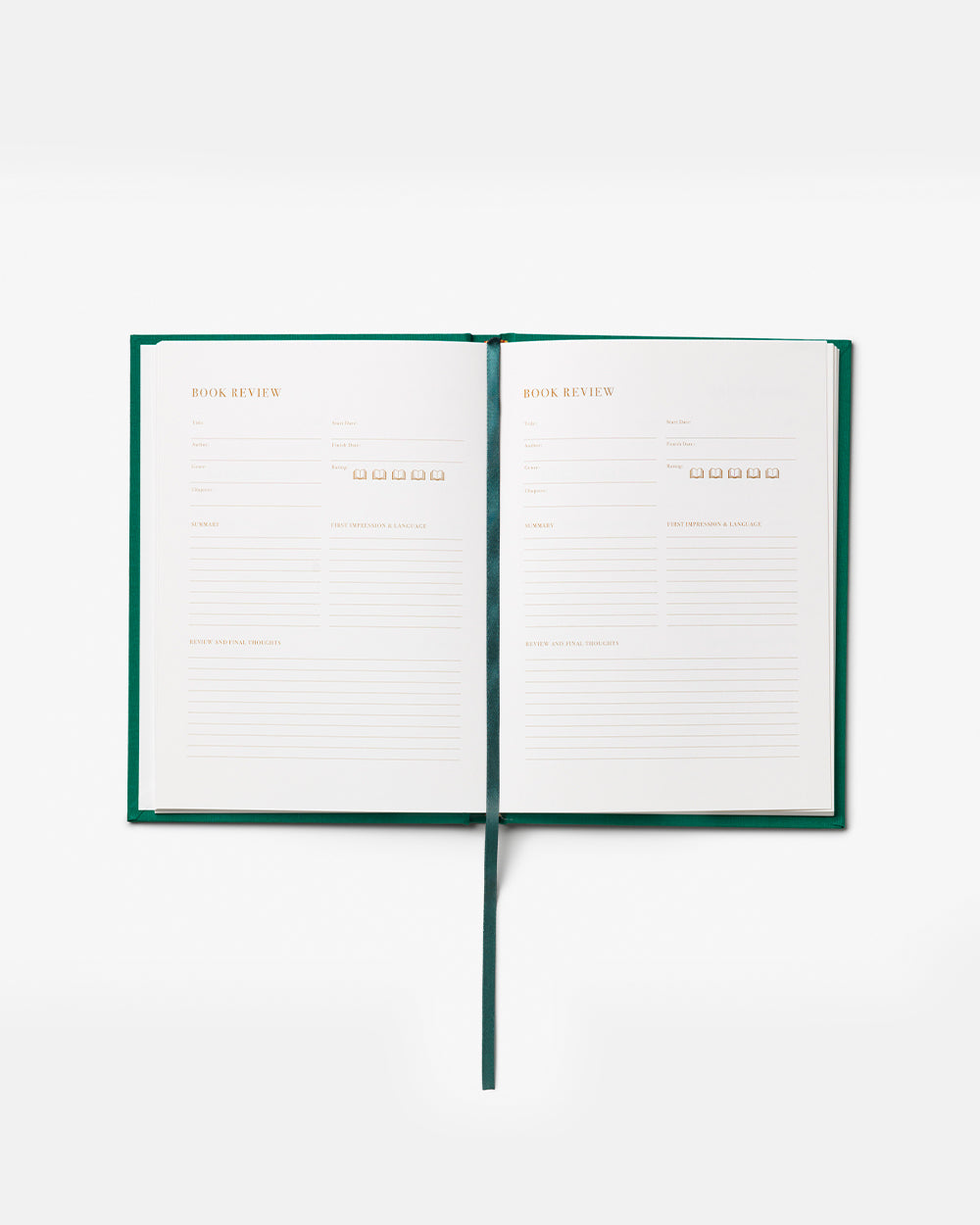 En läsdagbok för dig som vill följa dina litterära resor med stil. The Book Club har ett vackert omslag i gröna nyanser och innehåller sidor för bokrecensioner, läsloggar och listor över böcker du vill läsa.
