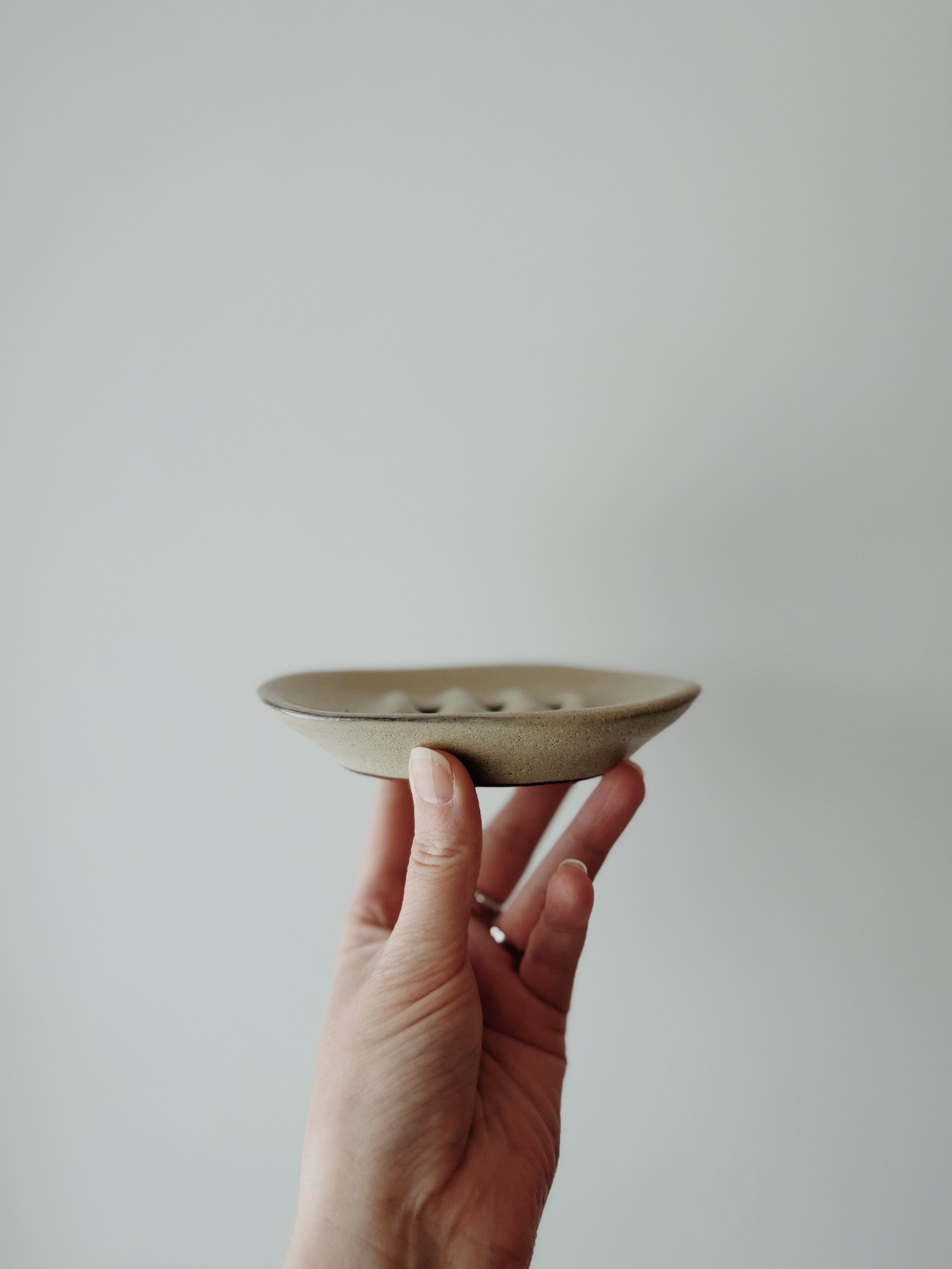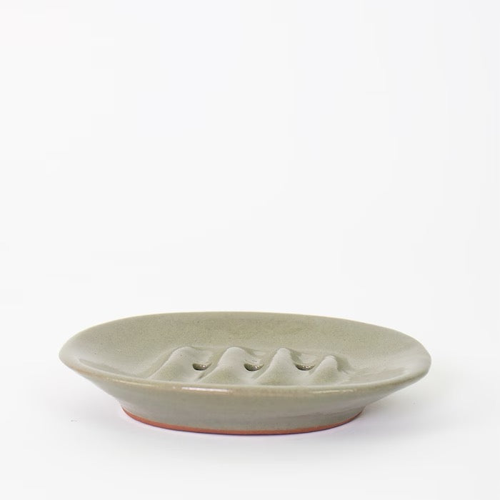 En fin handgjord tvålkopp i stengods med en blank glasyr som ger ett rent och tidlöst uttryck. Den låga formen passar bra vid handfatet och låter tvålen torka mellan användningarna. Varje exemplar är unikt tack vare det handgjorda hantverket.