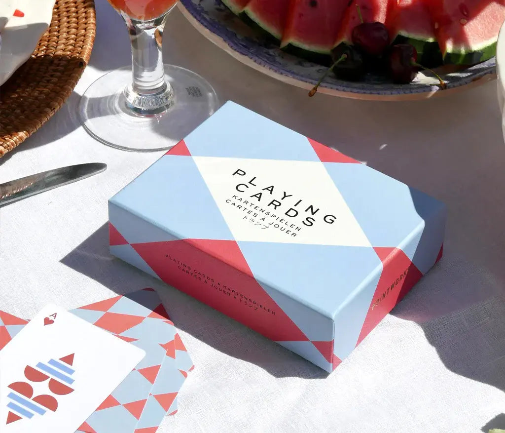 Två kortlekar i en stilfull förpackning som lyfter både spelstunden och inredningen. Med lekfulla färger, genomtänkt grafisk form och en elegant box blir dessa kort lika fina att spela med som att ha framme.